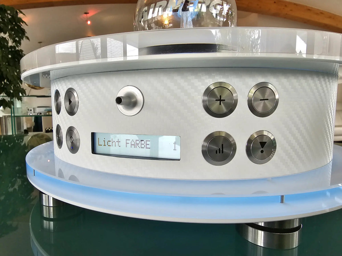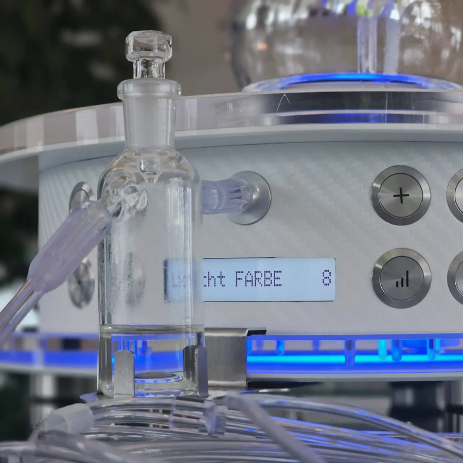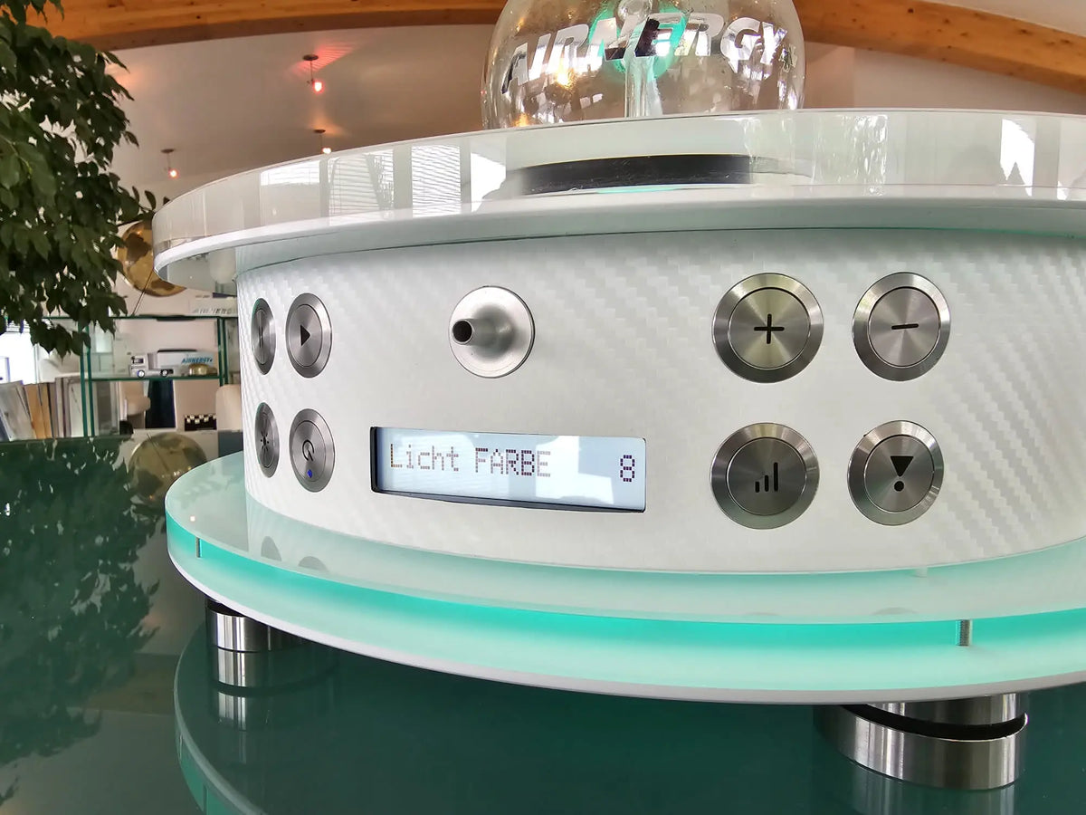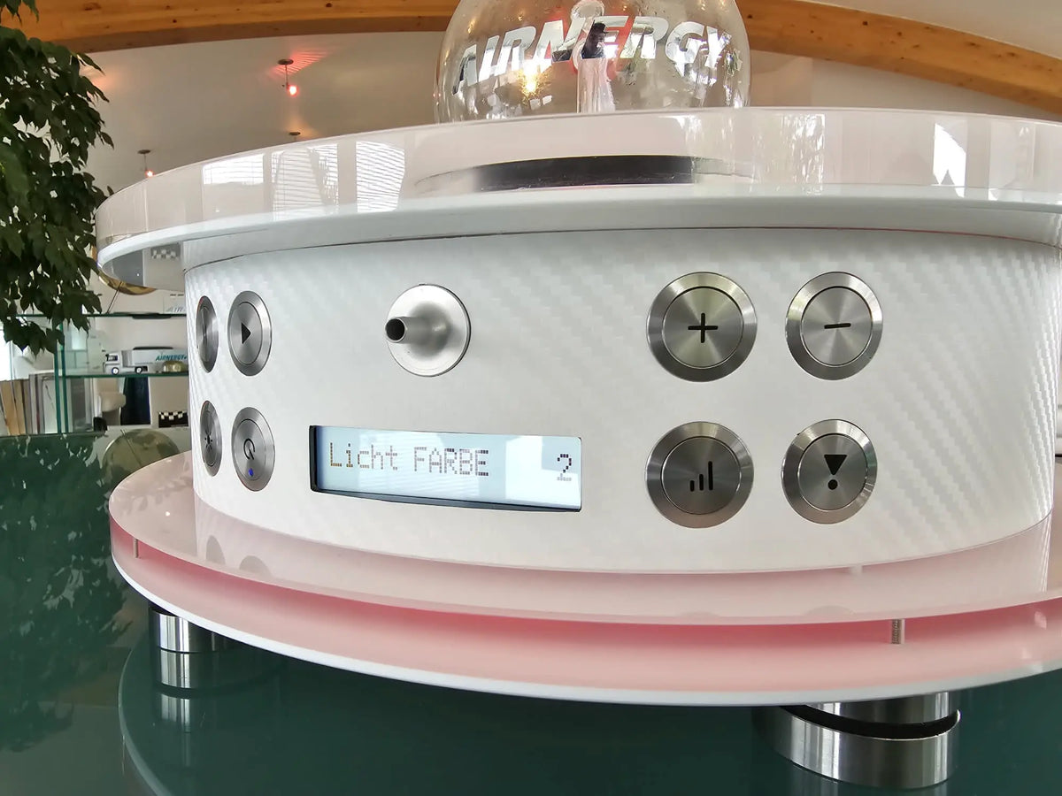 Räumlich durch eine Glasscheibe getrennt befinden sich in der Aktivierungseinheit im unteren Teil des Airnergy Vitalisators Katalysatoren und Sauerstoff.